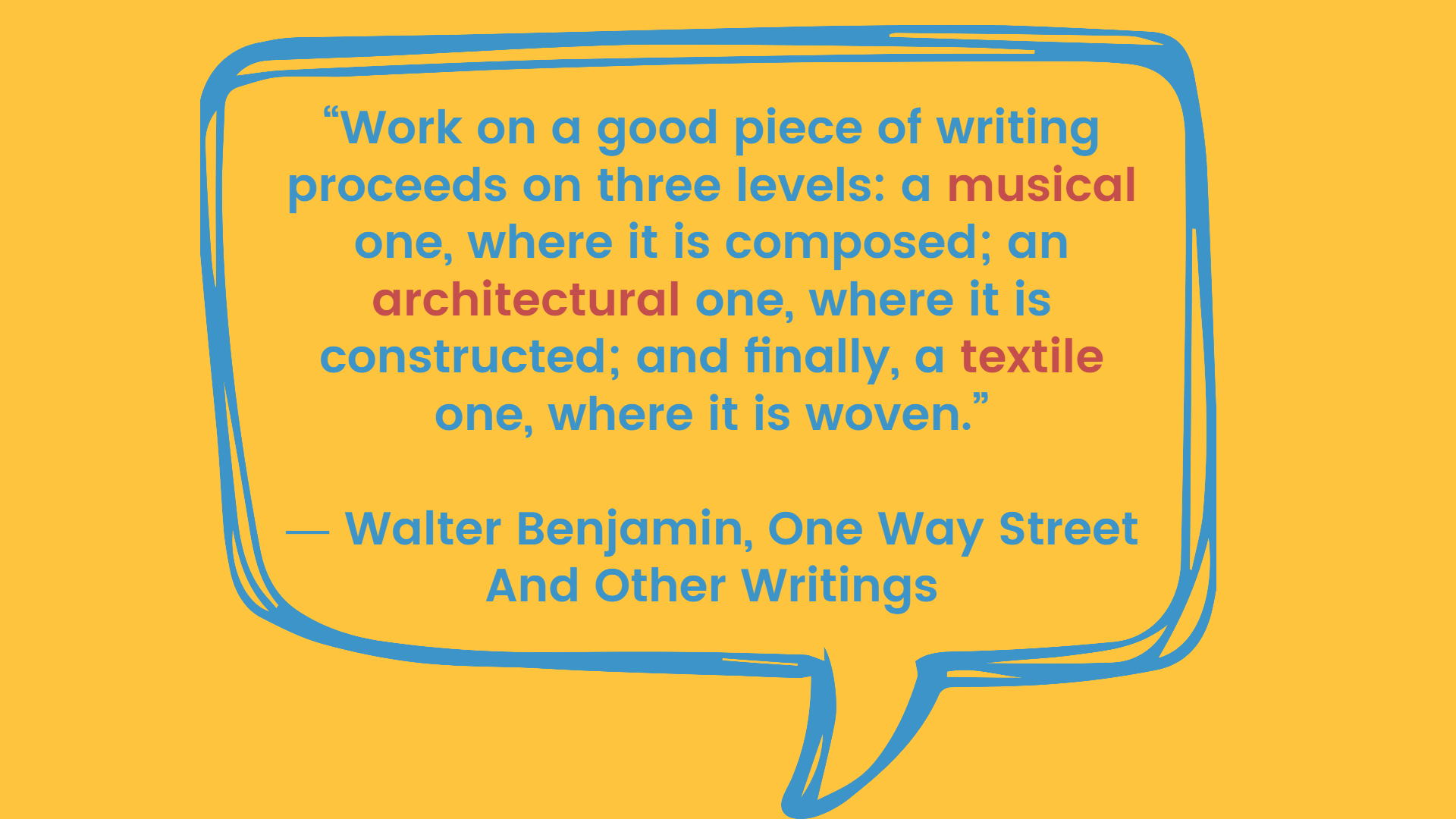 For me, it’s all about the Benjamin (quote above). With 10+ years of experience in creating compelling profiles, distilling complex science and technology concepts for a general audience, and incorporating SEO strategies into lively content, I continue to strive to create “a good piece of writing.” Though I specialize in arts and culture writing that profiles interesting artists and businesses, as a freelancer, I’ve done all sorts of writing and editing, from children’s chapter books to ghostwriting fiction to reporting on federal litigation. My writing versatility and breadth is born of my constant curiosity about this world. The need to produce quality writing, with the combination of the required music, architecture, and weaving, keeps my feet on the ground.