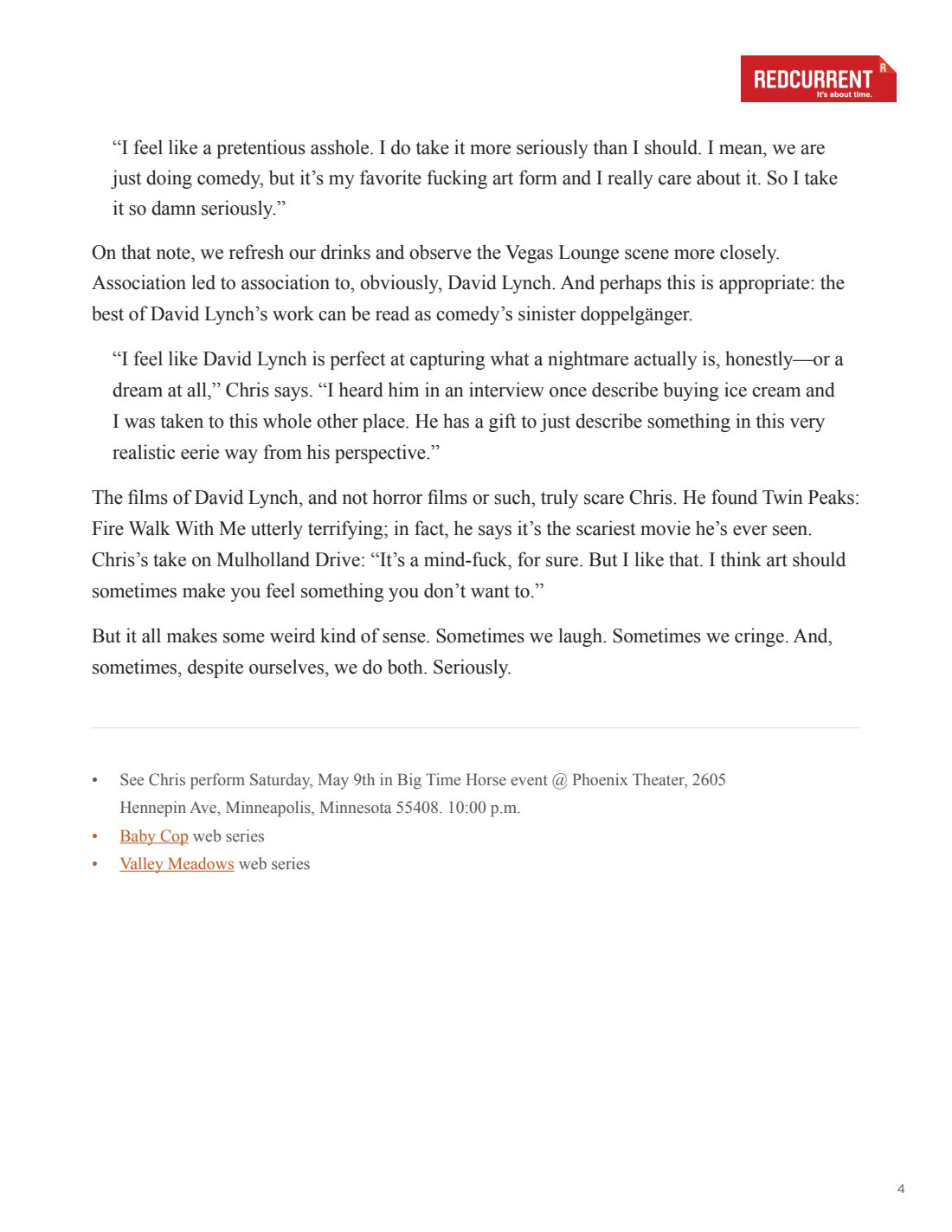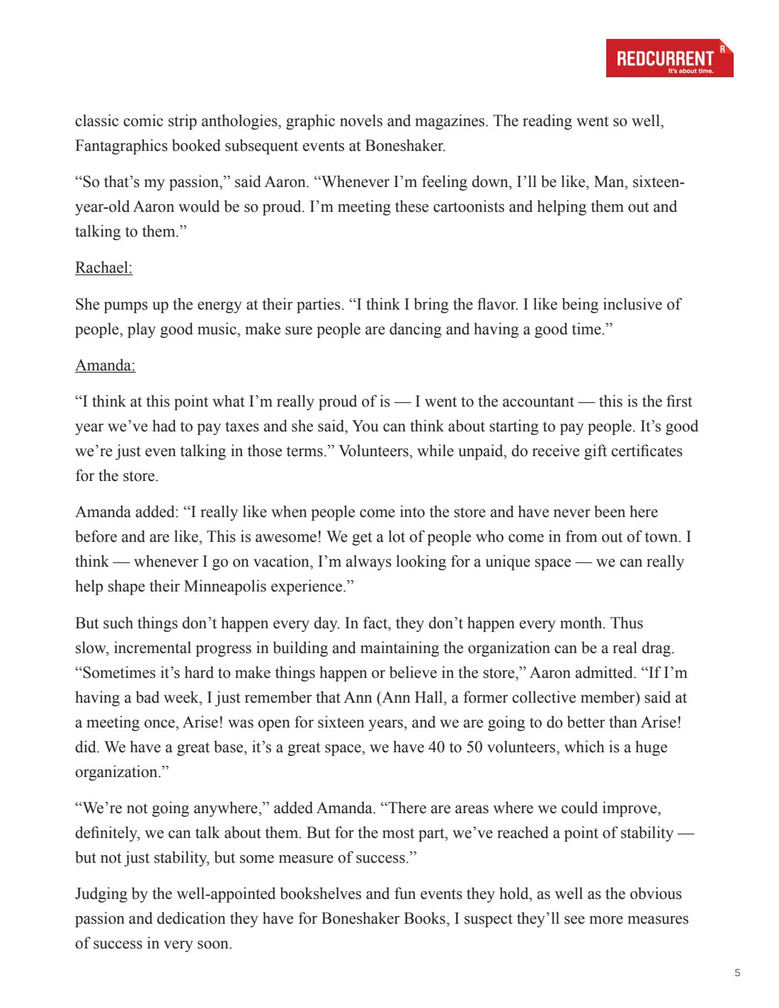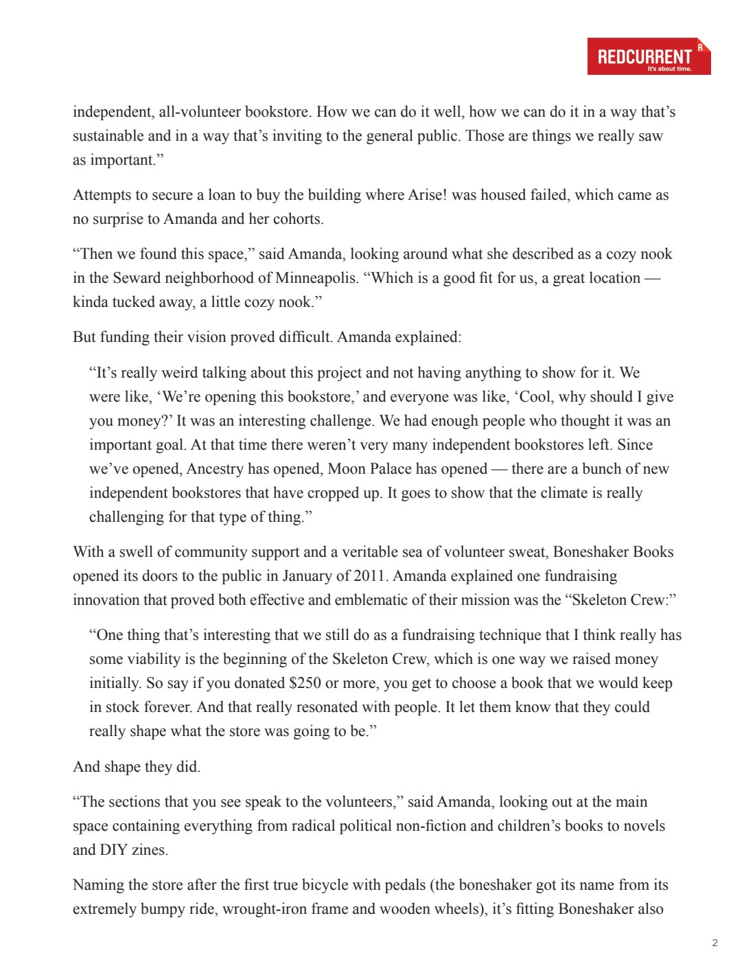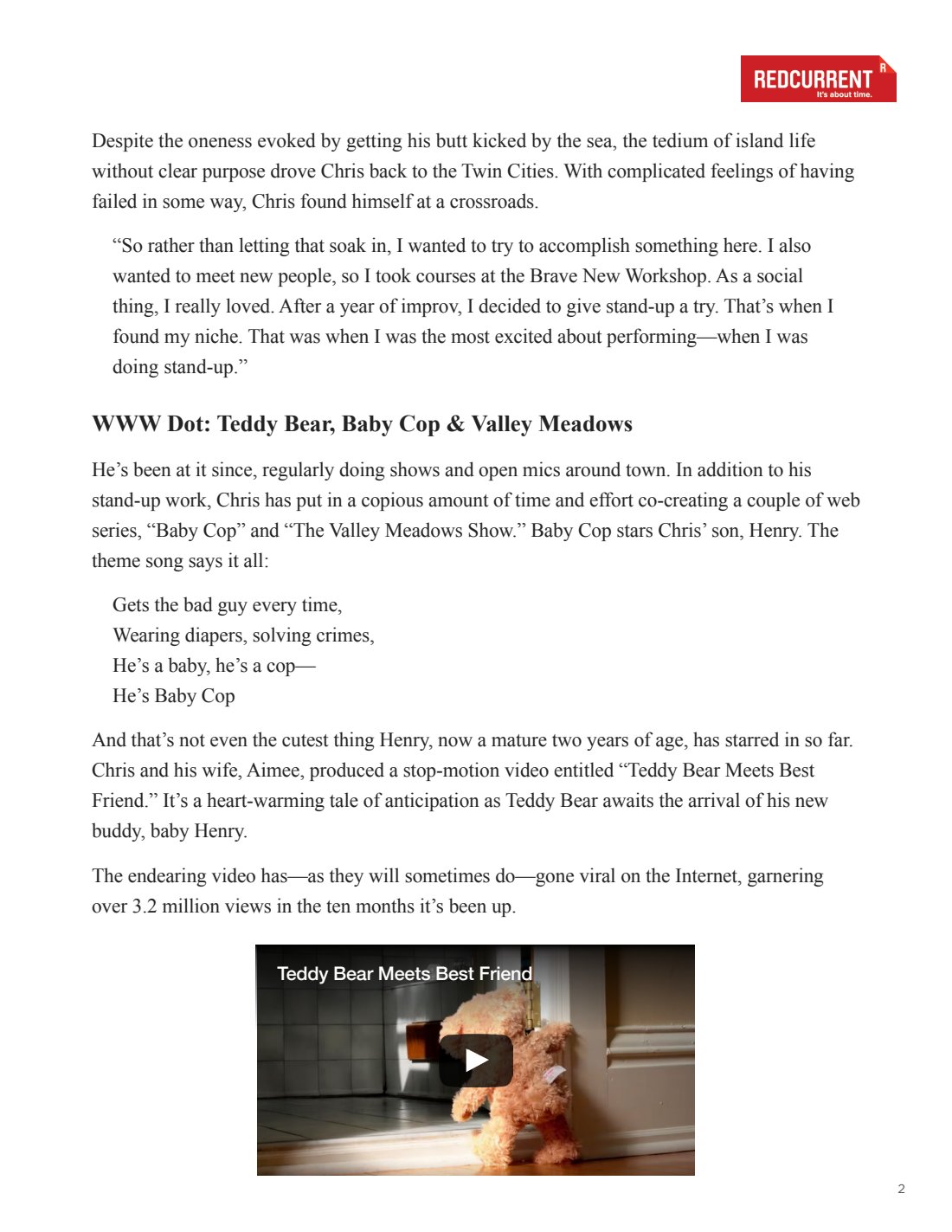 RedCurrent (now defunct) was a tech start-up based on an app to help busy people (mainly parents of young children) to easily and effectively find events and activities. I was a contributing writer for the business's blog, which started with showcasing events in the Twin Cities, with the plan to expand to other cities. As with the majority of startups, the company didn't take off. The silver lining is that there was great interest in the blog, since people are generally interested in learning about the interesting things happening locally. But demand for the main product, the app, did not materialize.