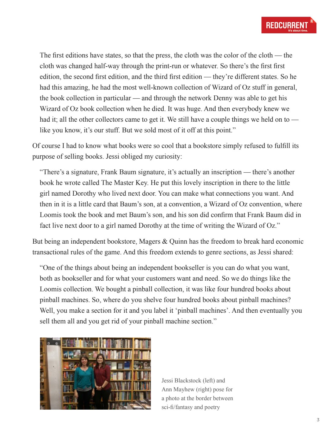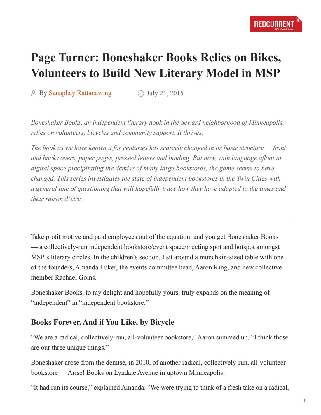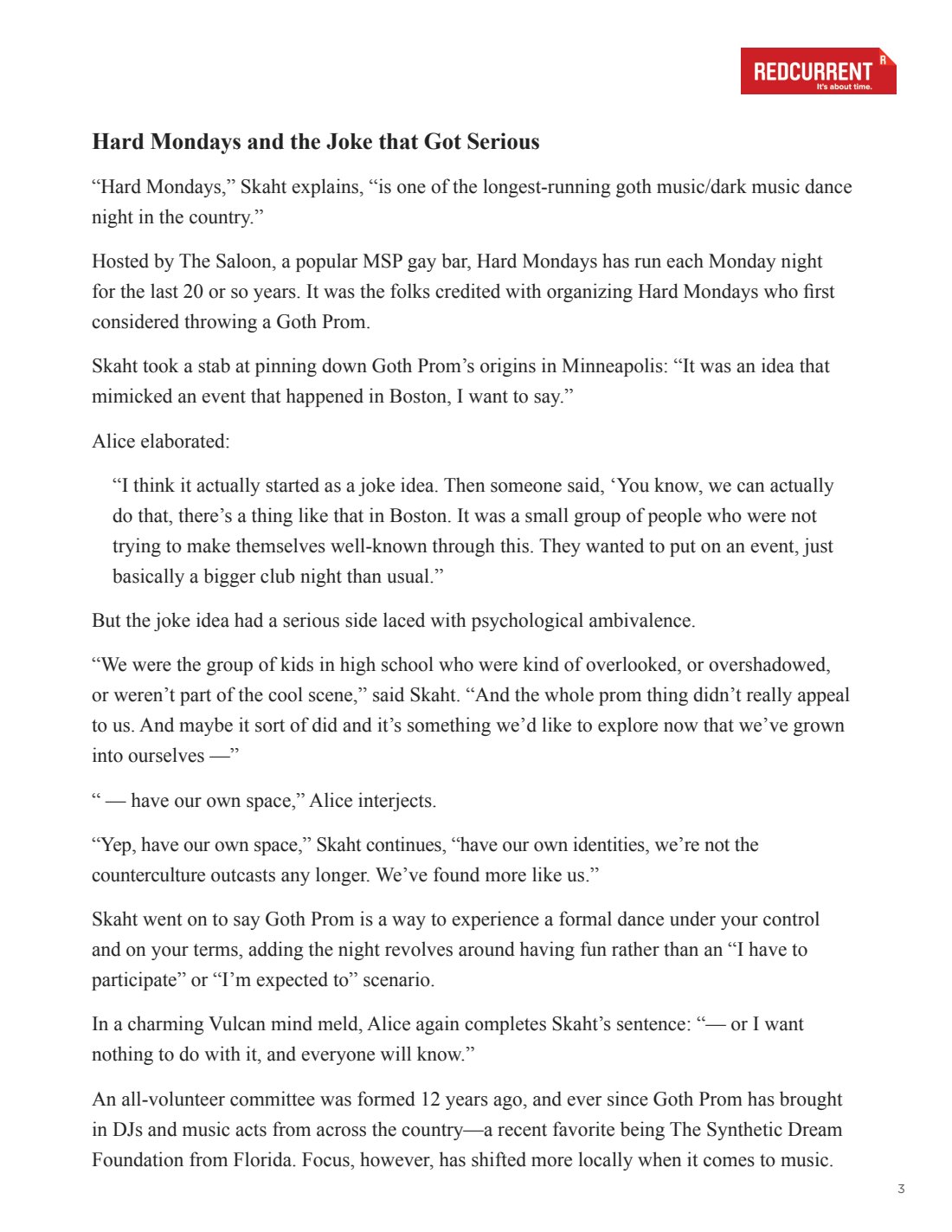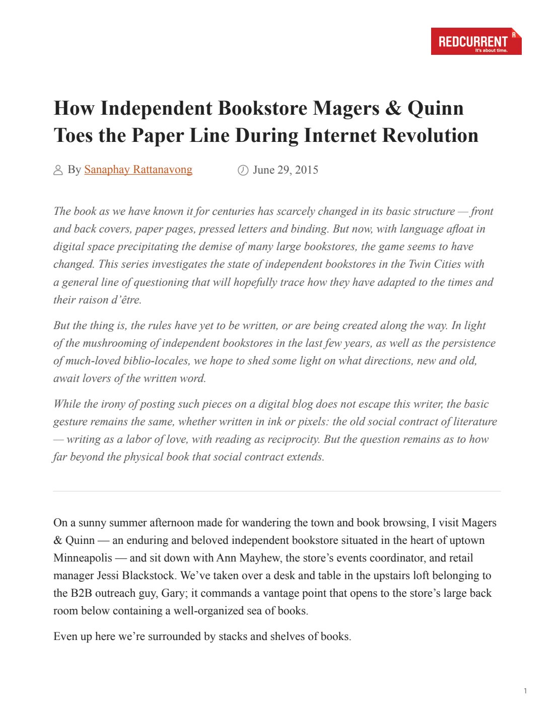 RedCurrent (now defunct) was a tech start-up based on an app to help busy people (mainly parents of young children) to easily and effectively find events and activities. I was a contributing writer for the business's blog, which started with showcasing events in the Twin Cities, with the plan to expand to other cities. As with the majority of startups, the company didn't take off. The silver lining is that there was great interest in the blog, since people are generally interested in learning about the interesting things happening locally. But demand for the main product, the app, did not materialize.